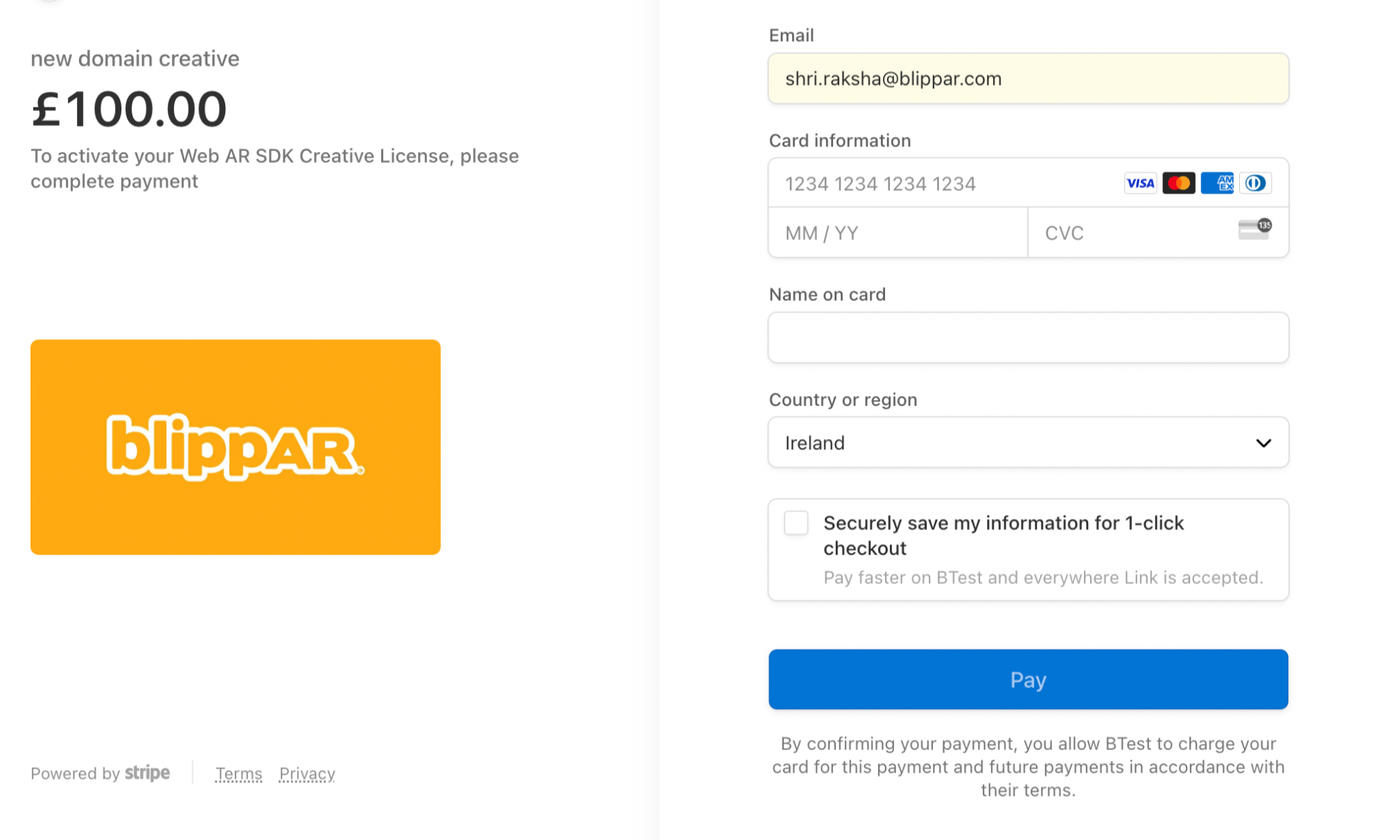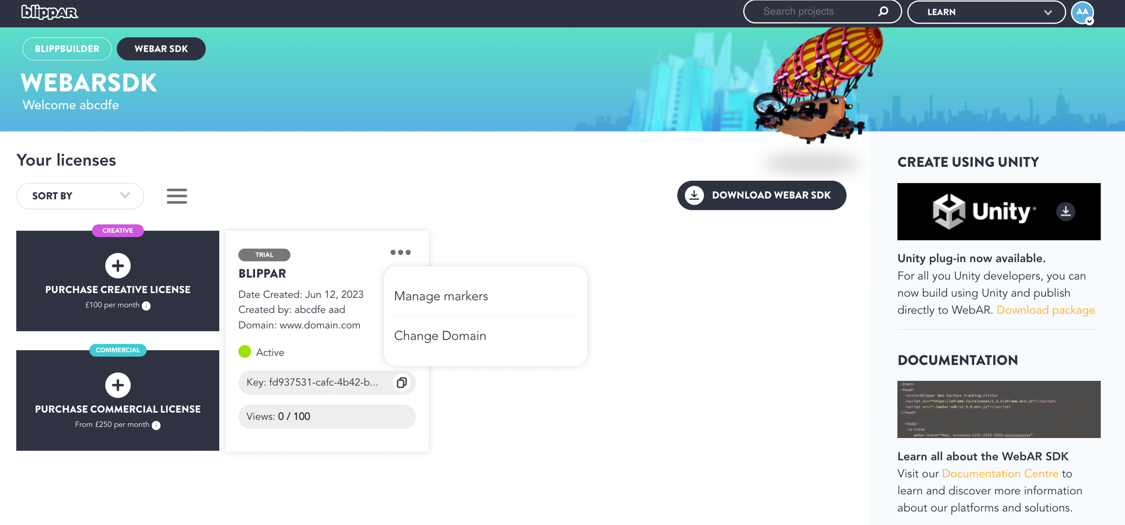 If you don't have a domain yet, feel free to enter blippar.com or any other domain, or just develop locally. You can always create a new license once your domain is setup.