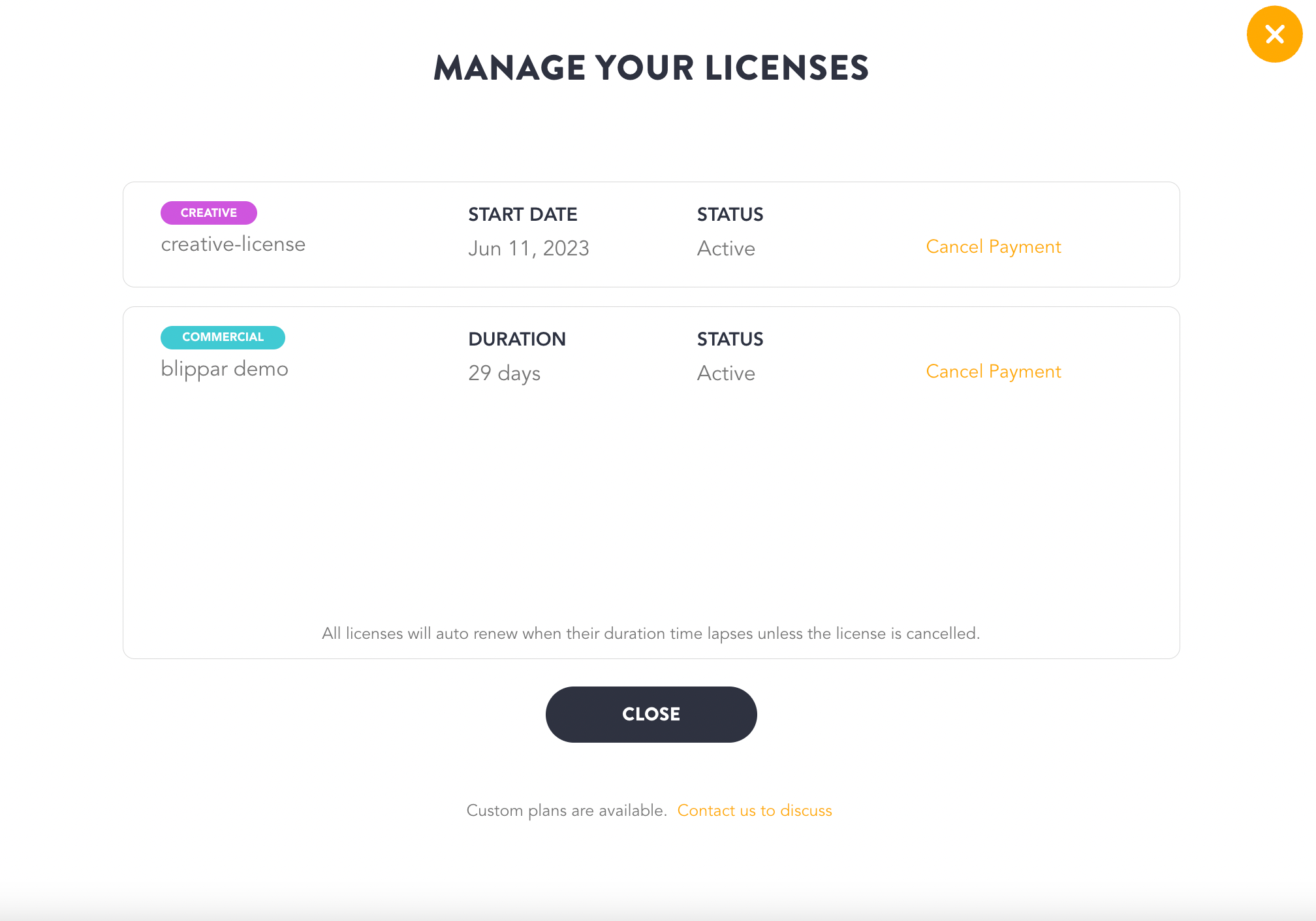You can choose to cancel auto-payment from this section for the license.