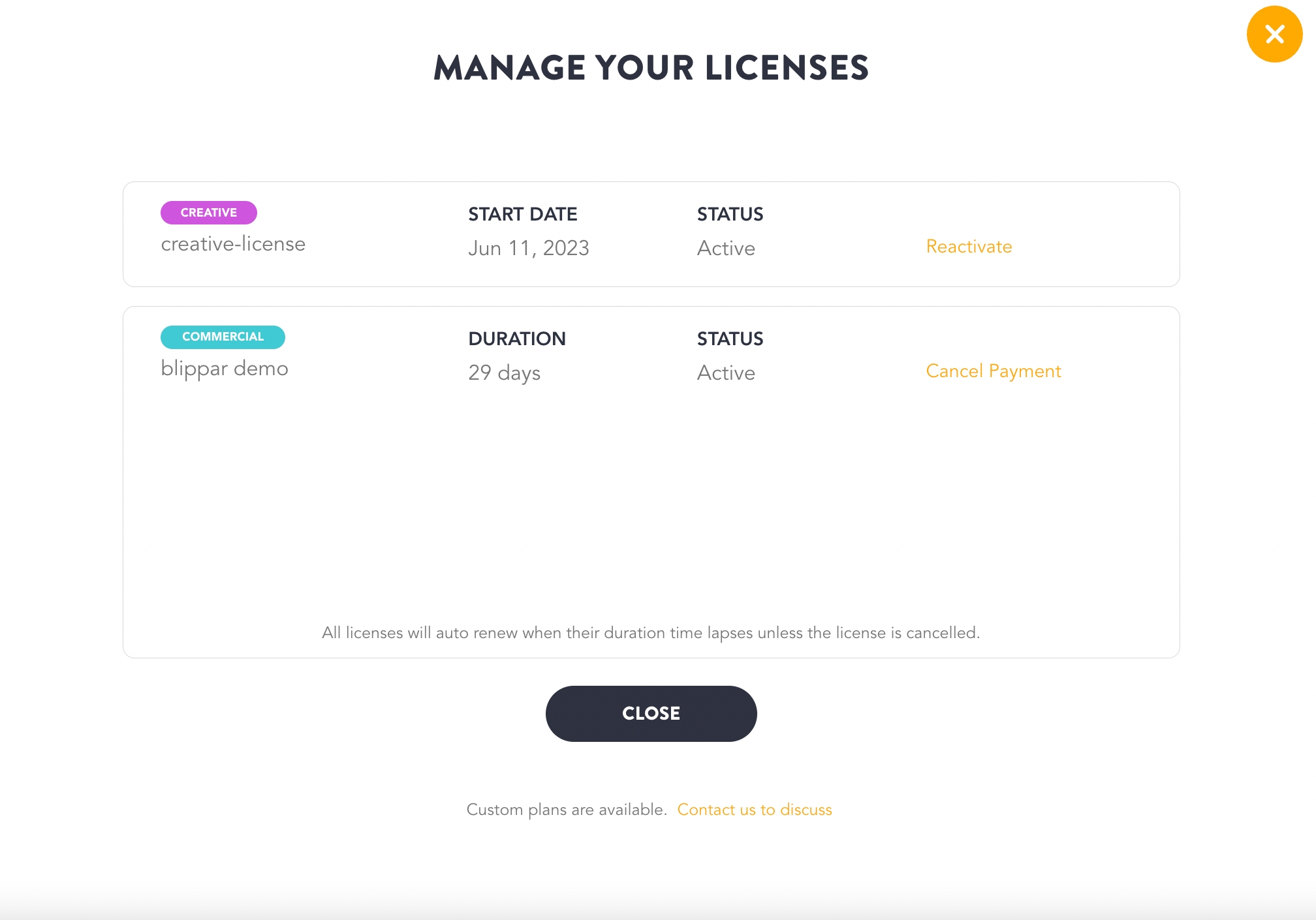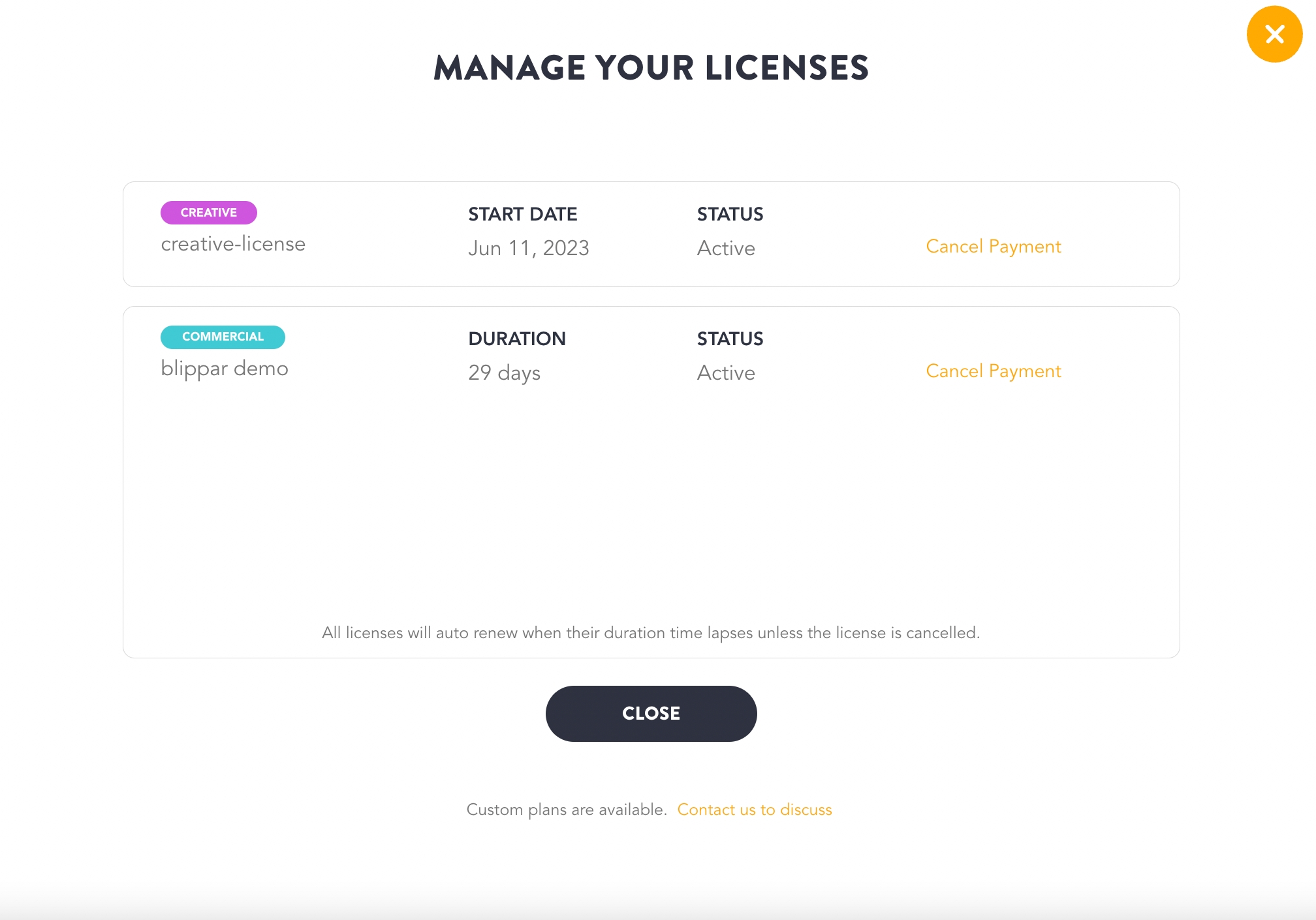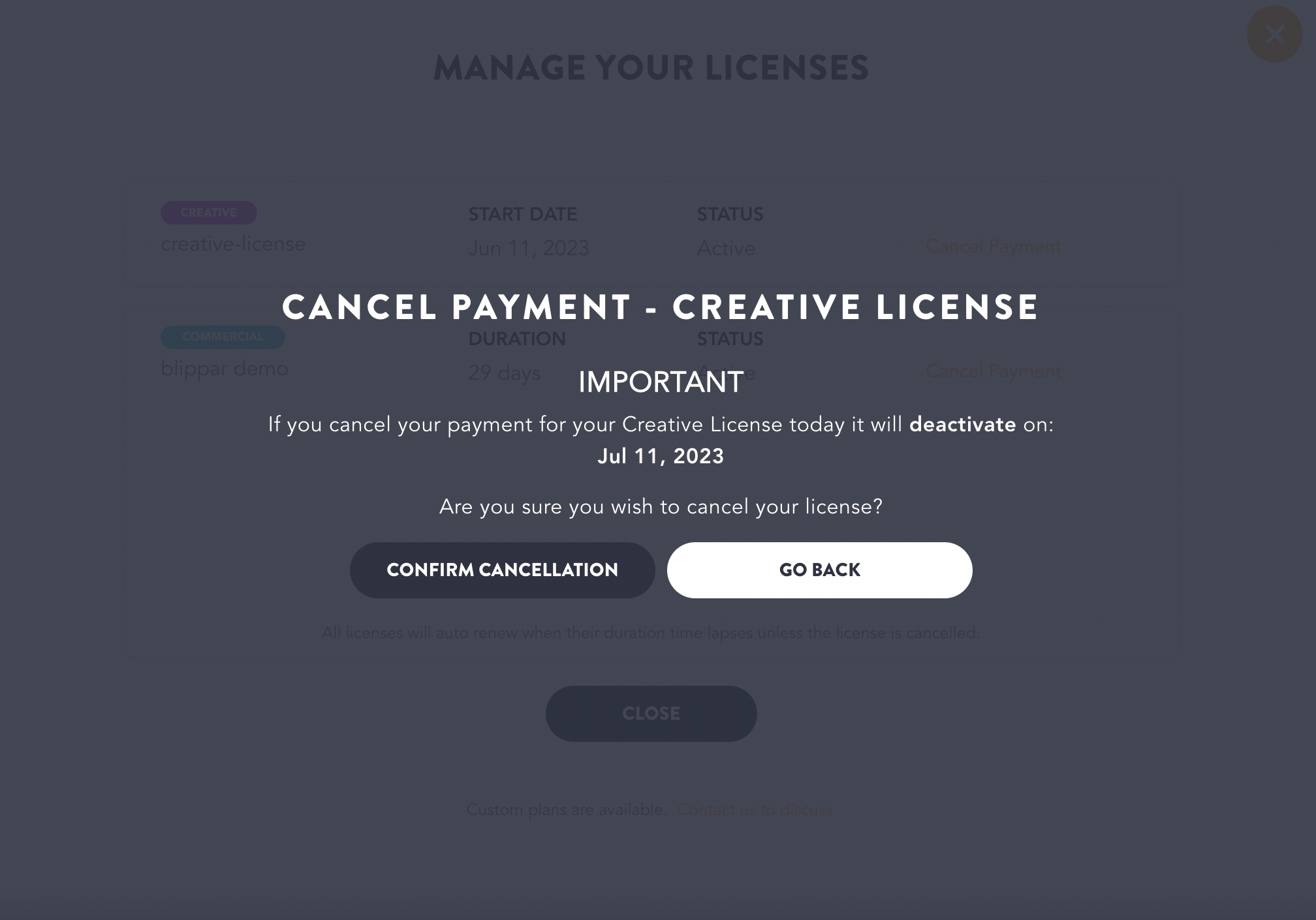It is advisable to not 'Cancel Payment' as if the license expires, all the creations will npt be accessible and cannot be renewed. A cancelled license cannot be renewed.