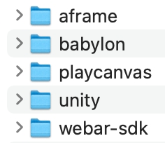 The exact form of the below will look different depending on how you installed the WebAR SDK. The example which follows assumes you downloaded the WebAR SDK and extracted it so that the script file - webar-sdk.min.js and libs folder is in the same location as your HTML file. Follow the instructions in the Install section to find the right tag for your setup.