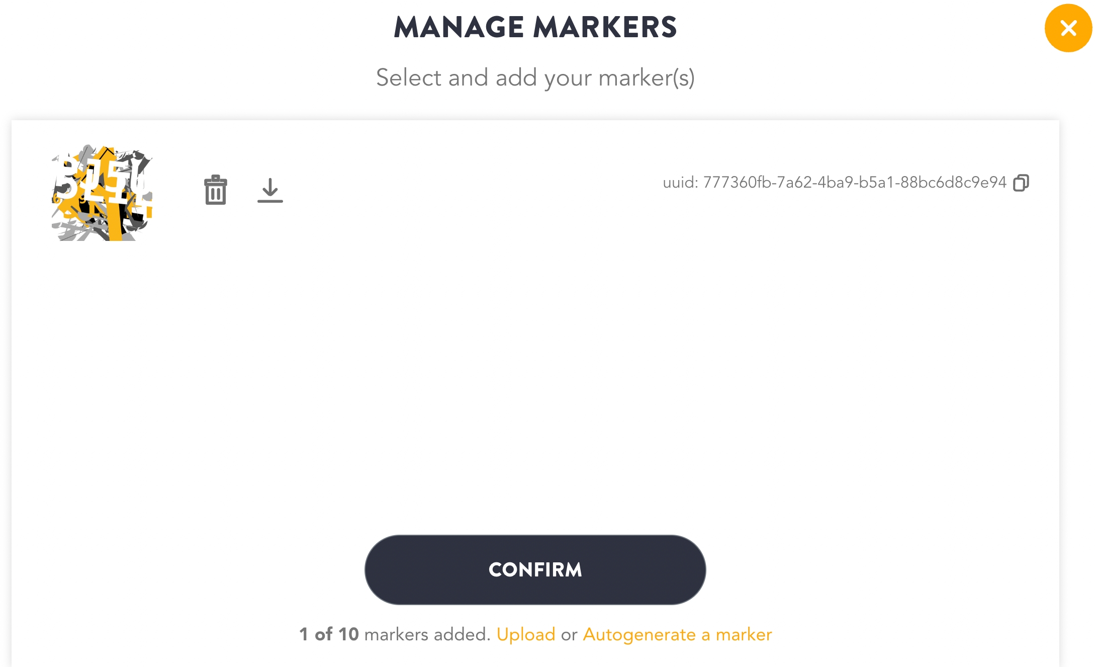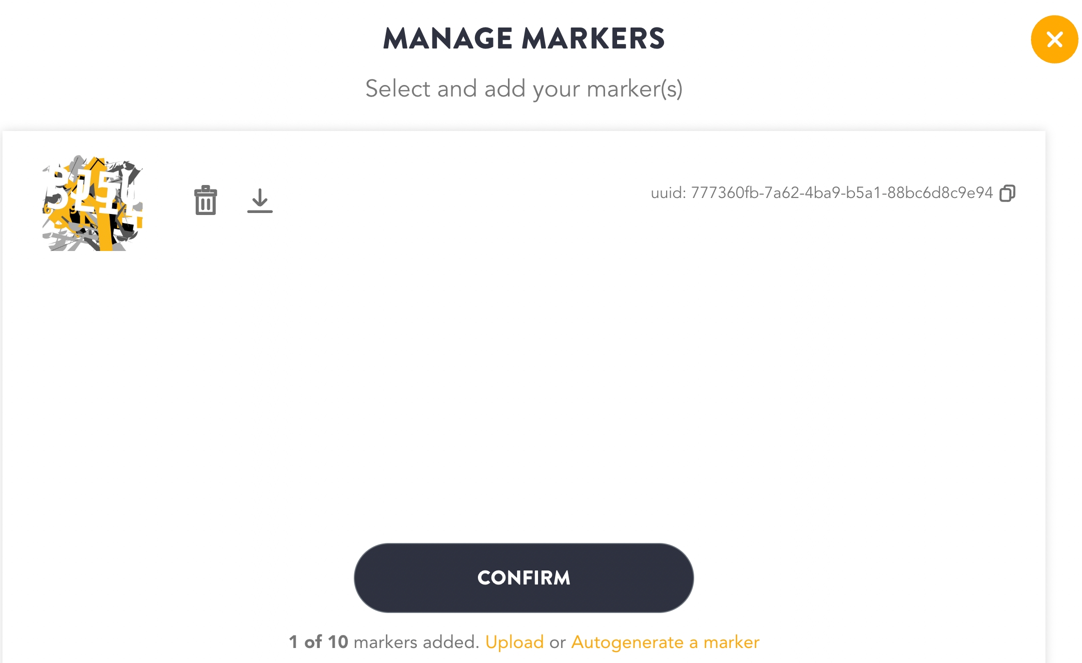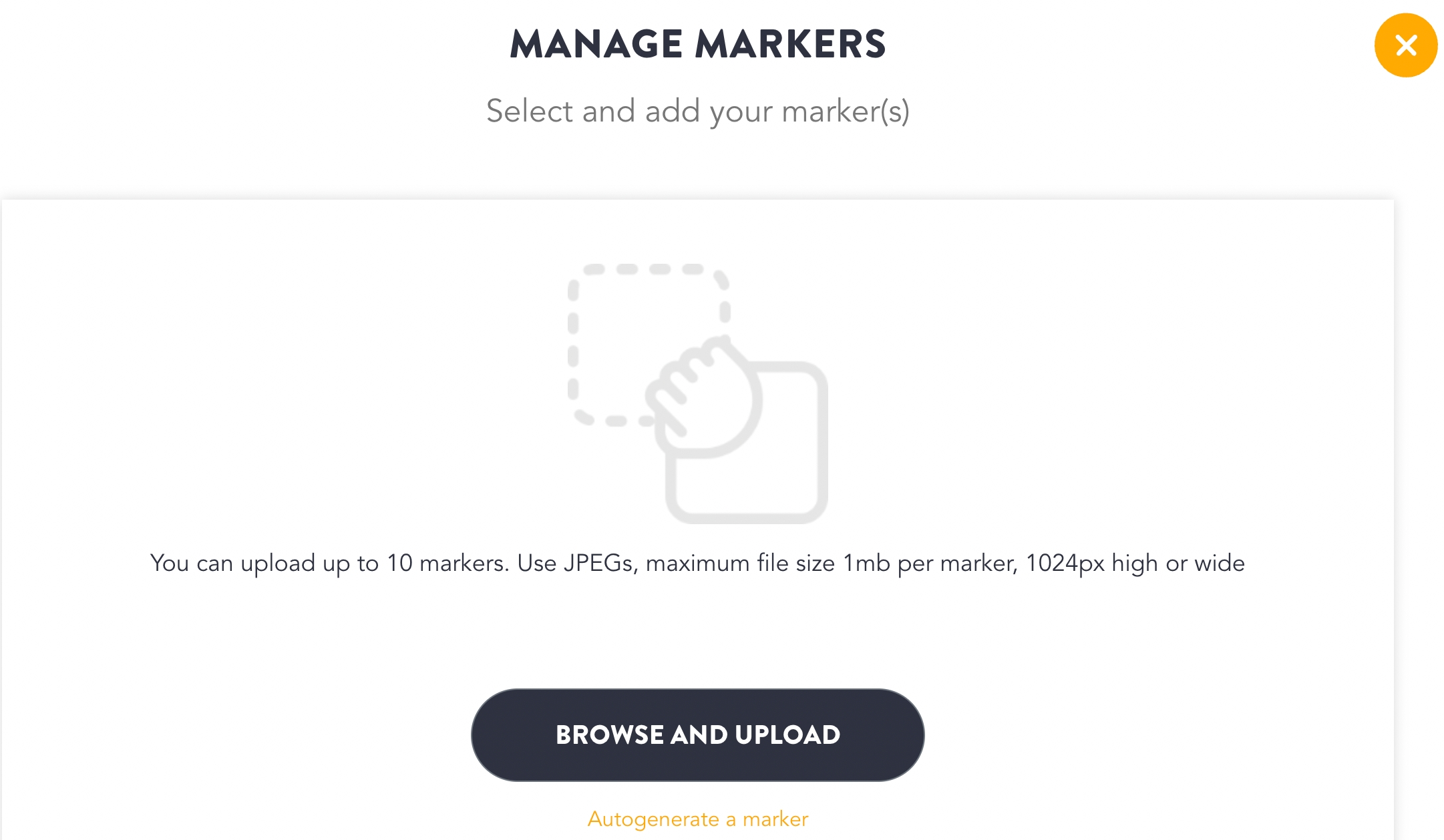 You will be redirected to a page where you can browse or upload the marker. You can also auto-generate a marker which will provide a sample marker for testing the tracking.