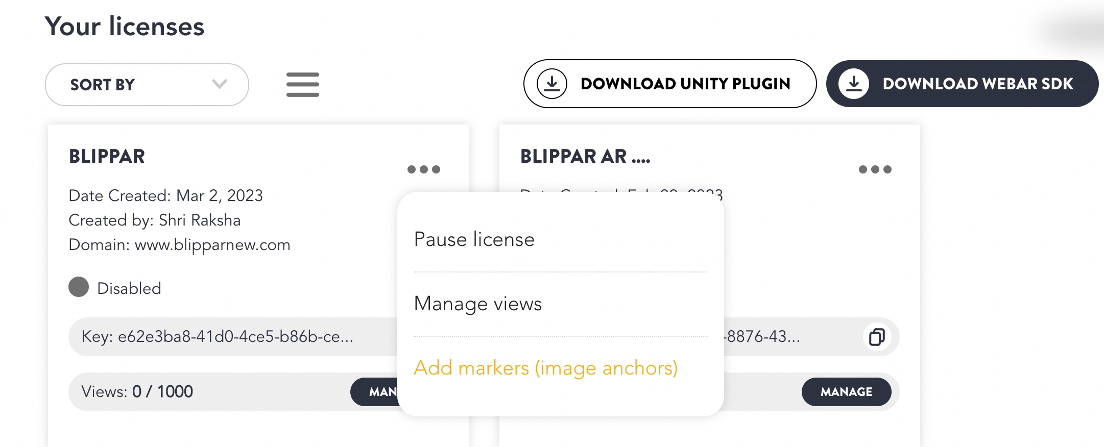 Click the copy icon next to the 'License Key' information to copy the marker ID from the ‘Manage Marker’ section as shown in the image below: