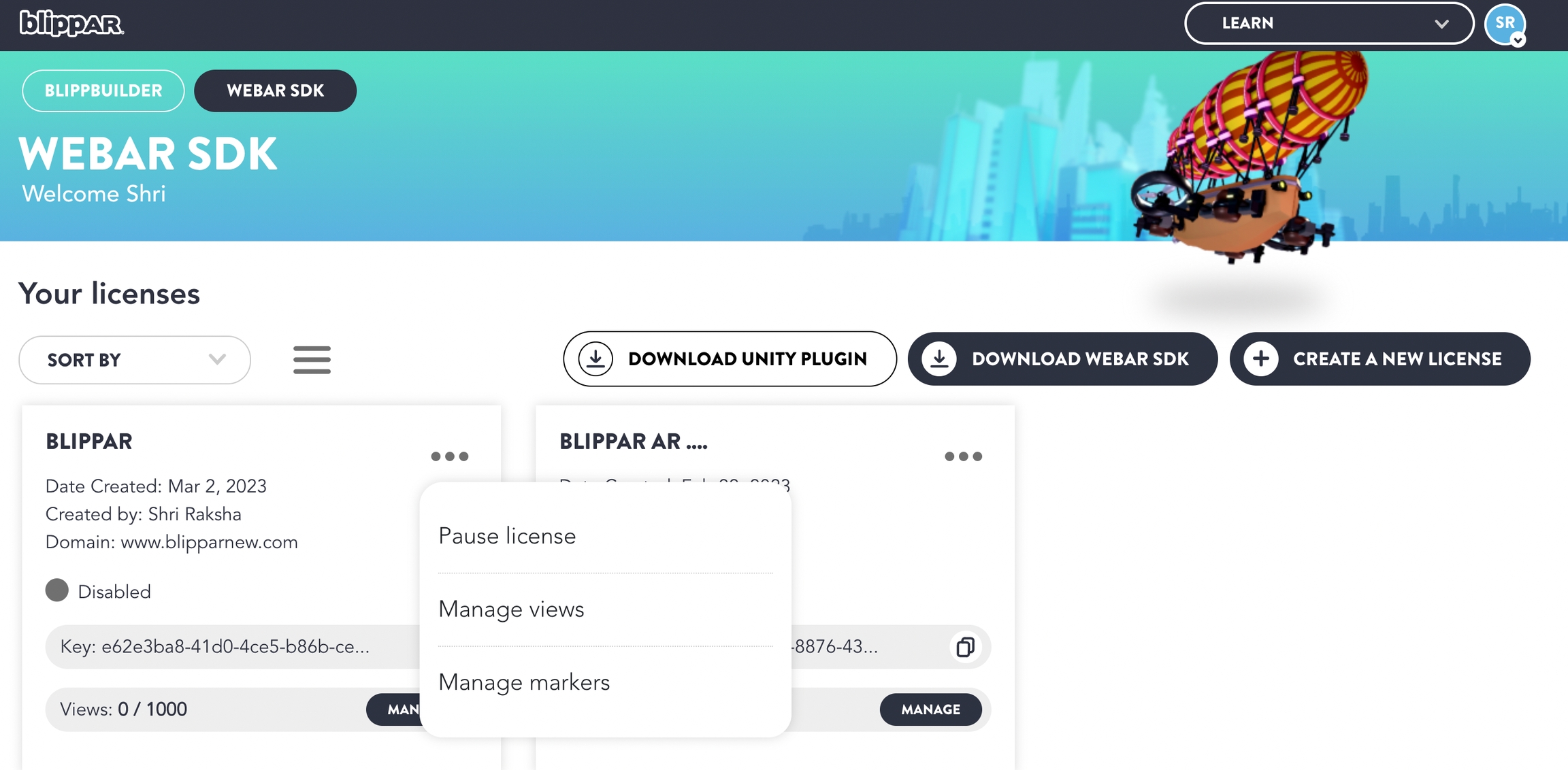 <!-- Provide a valid Blippar license-key value in the key: property -->