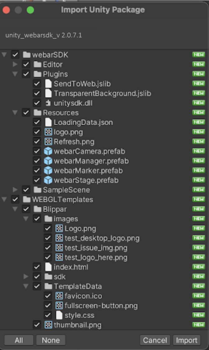 * Download the [unity\_webarsdk.unitypackage](https://unity-webar-sdk.blippar.com/releases/latest/unity_webarsdk.unitypackage?_gl=1*tsfx\[%E2%80%A6]Z5WQRDSH6E*MTY4NjczNTEyMC4yMS4wLjE2ODY3MzUxMjkuNTEuMC4w)
