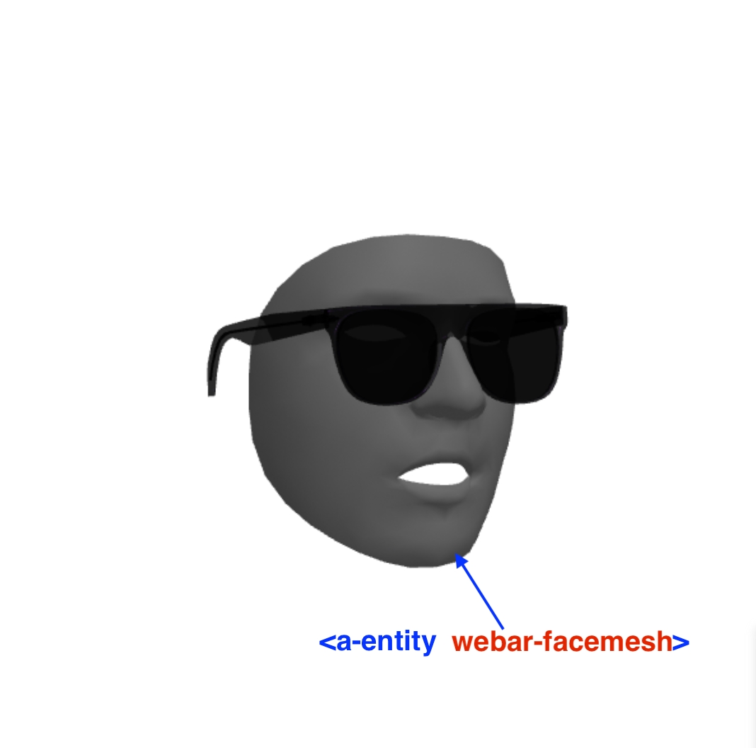 <a-entity webar-face> </a-entity>To be used once with a parent entity of all of the 3D model entities that have to be positioned w.r.t the tracked face.