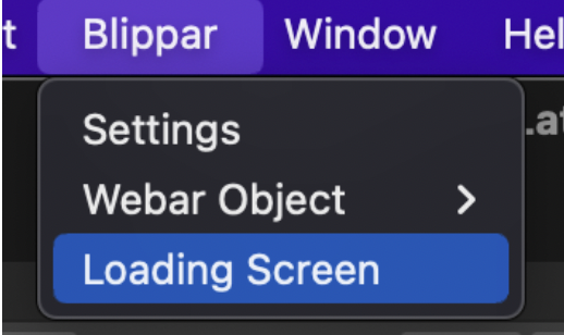 Click on the 'Blippar' Menu tab and from the drop-down, select the option 'Loading Screen'.