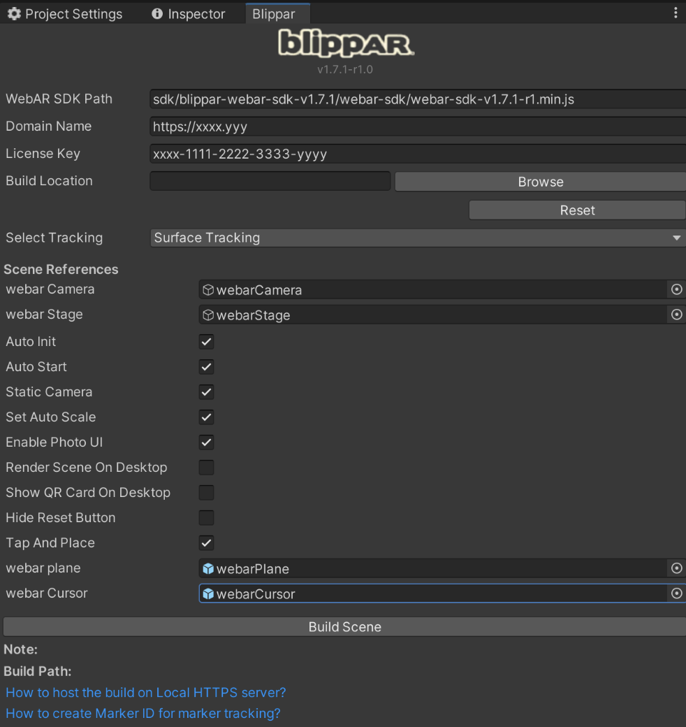 In the Blippar Inspector tab, click Build to build the surface tracking web application.