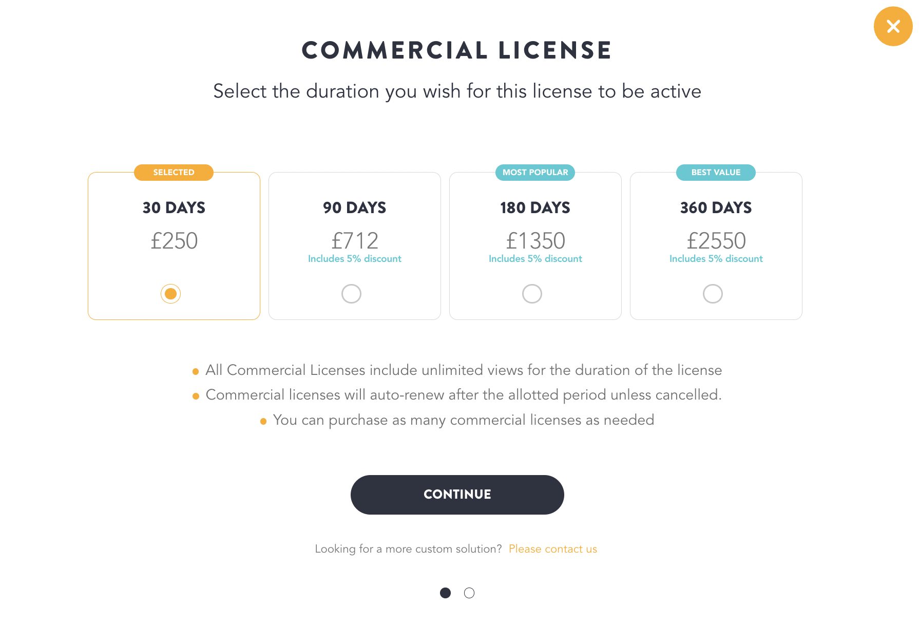 * Choose a desired commercial plan based on your needs and click **'Continue'**