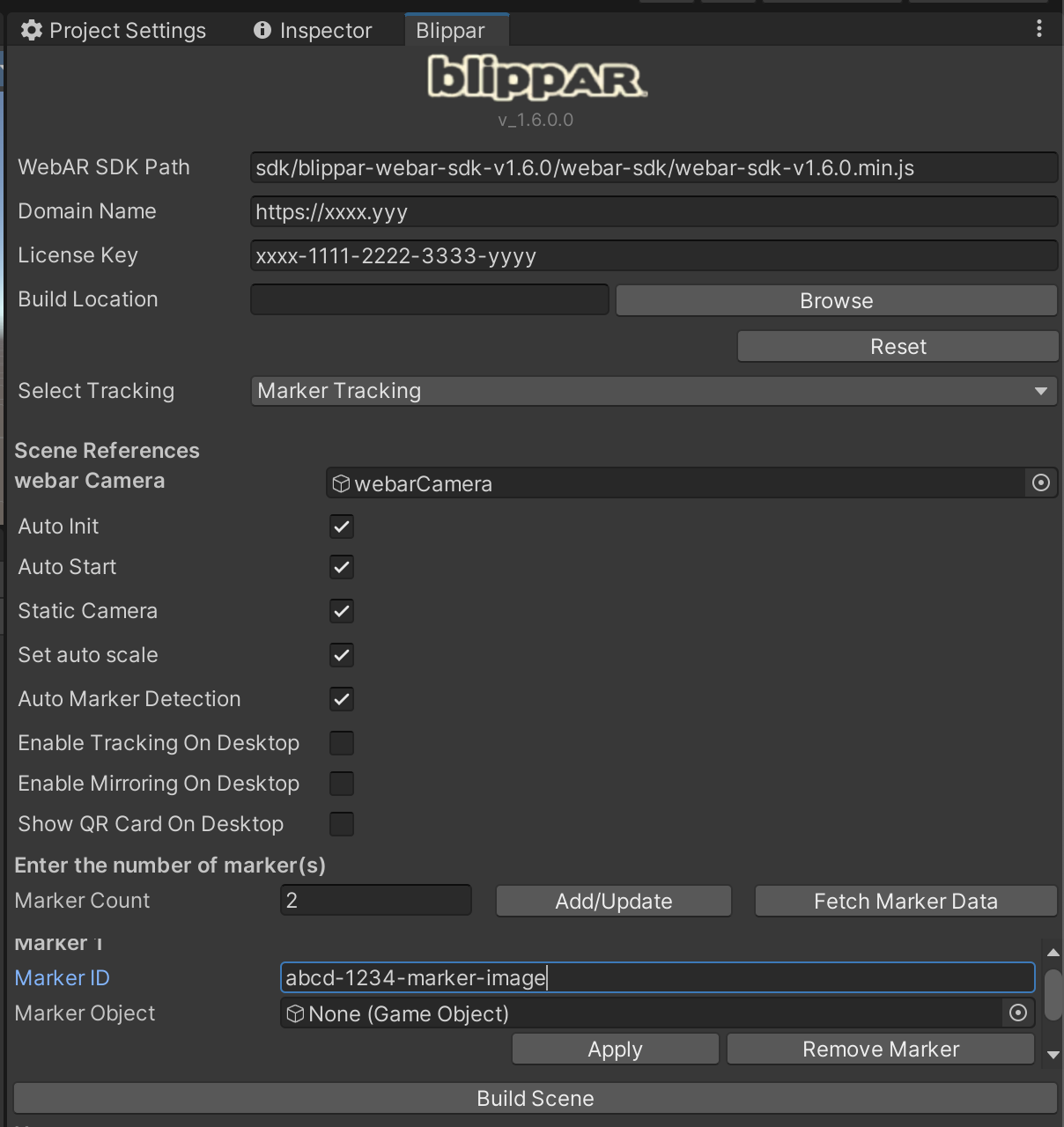 Navigate to the Blippar Inspector window and select the option ‘Marker Tracking’ as shown below: