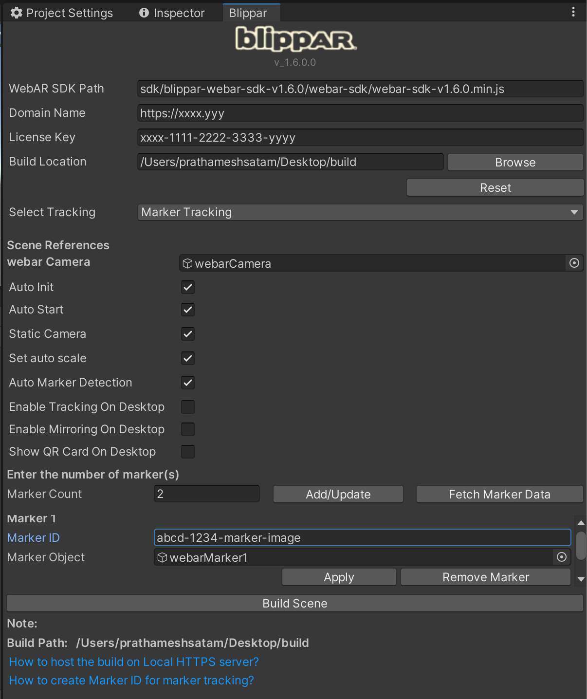 Click Build in the Blippar Inspector tab, to build the marker tracking web application.
