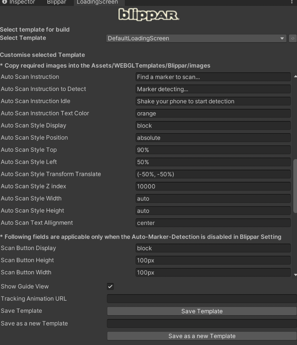 * Provide the name of the logo and store the required assets into the Assets/WEBGLTemplates/Blippar/images. This is the folder location in which the image files must be stored in order to effectively trigger the customized animation.