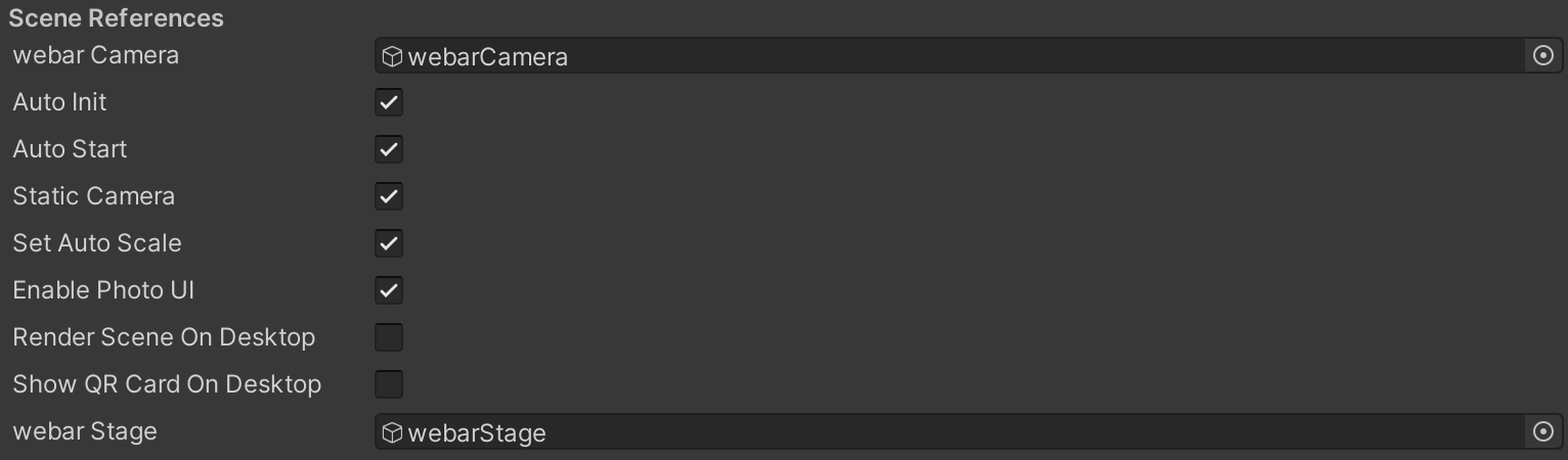 Unity WebAR sdk package allows user to handle the behavior of the sdk by configuring the different parameters
