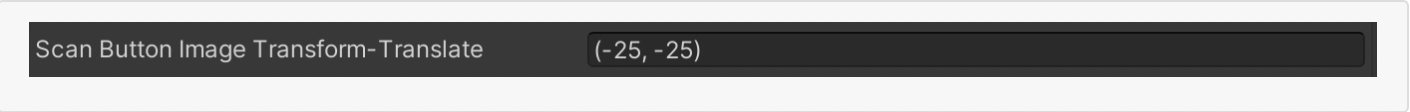 Sets the x and y coordinates of the image displayed in the scan button during marker tracking i.e. when webar-mode="marker-tracking". The x and y position of the image is the top left position, relative to the viewport of the origin of the element i.e the scan button. Use scan-btn-img-transform attribute's translate() method to position the image to the centre.