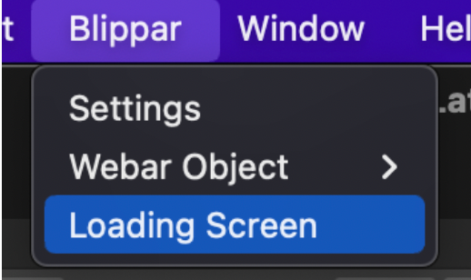 Click on the 'Blippar' Menu tab and from the drop-down, select the option 'Loading Screen'.