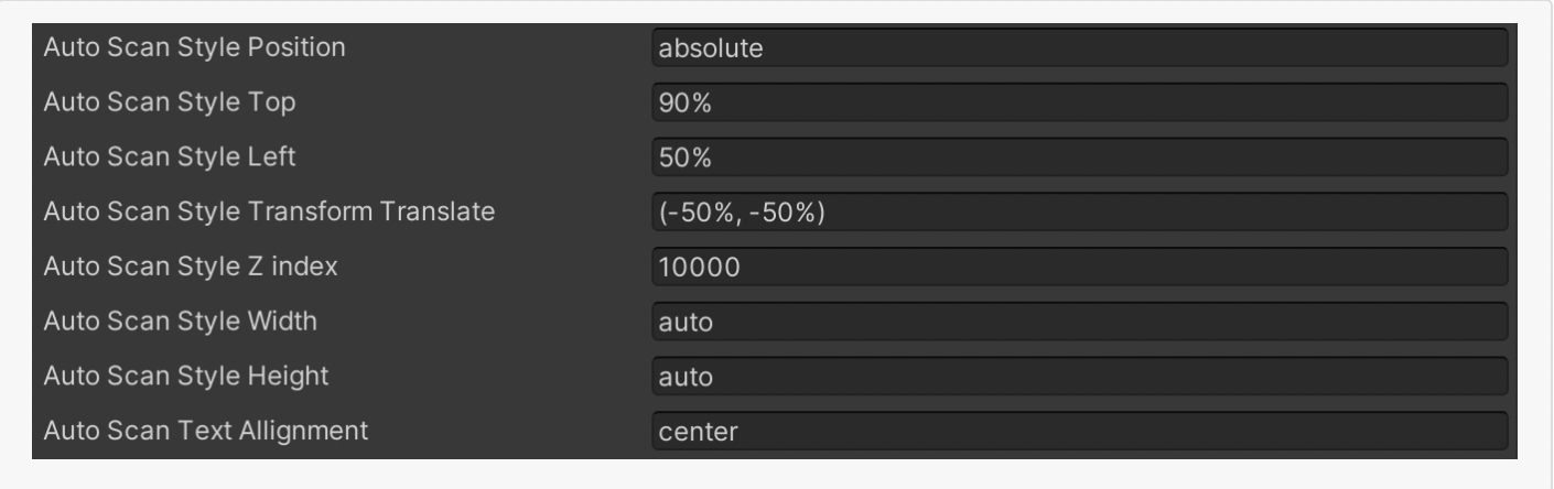 Sets the x and y coordinates of the image displayed in the scan button during marker tracking i.e. when webar-mode="marker-tracking". The x and y position of the image is the top left position, relative to the viewport of the origin of the element i.e the scan button. Use scan-btn-img-transform attribute's translate() method to position the image to the centre.