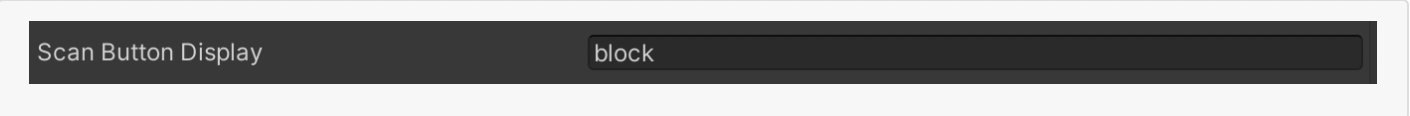 Changes the css display property of the scan button displayed during marker tracking i.e. when webar-mode="marker-tracking". To make it invisible set it to"none"else"block".