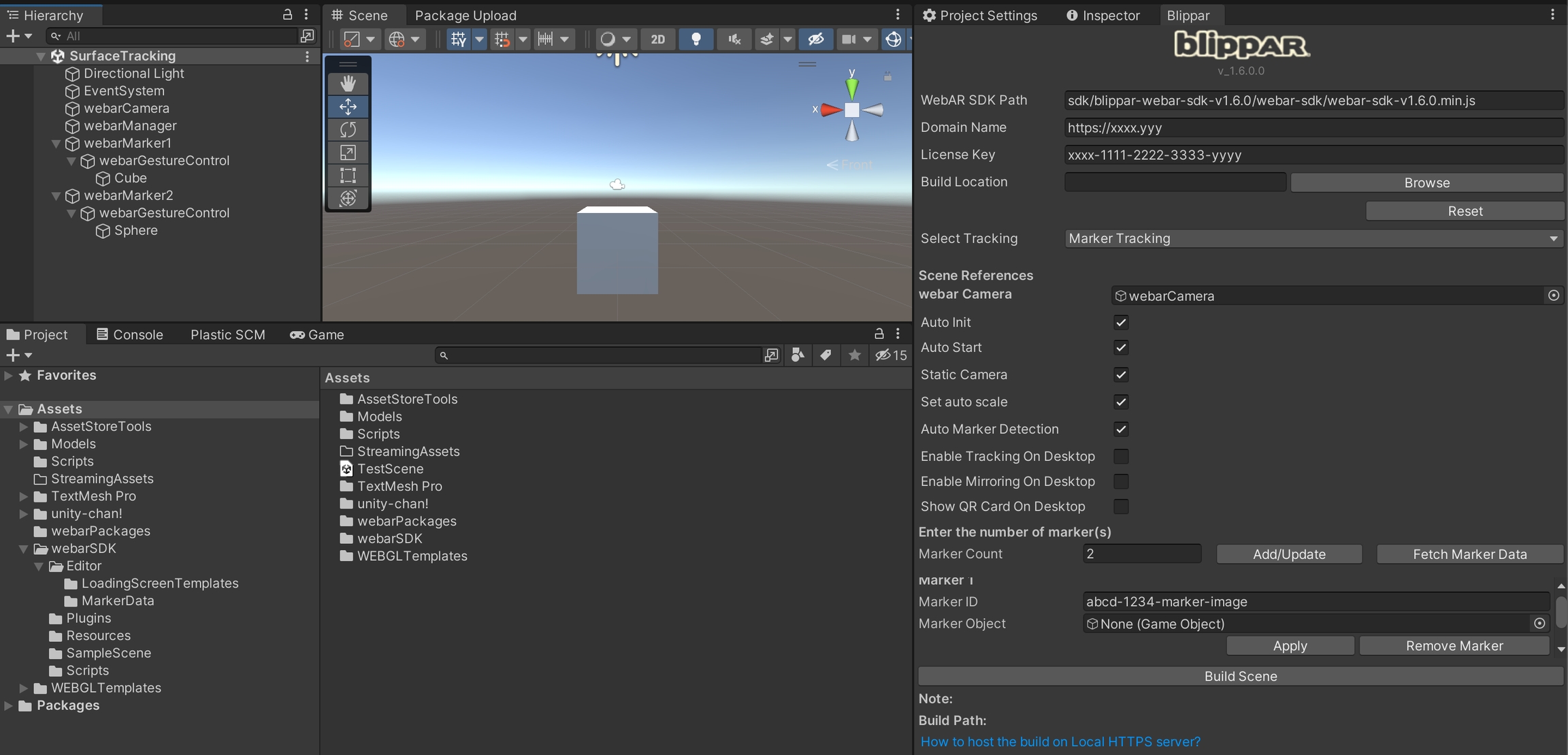 To create a marker tracking app using Unity and WebAR SDK follow the below steps: